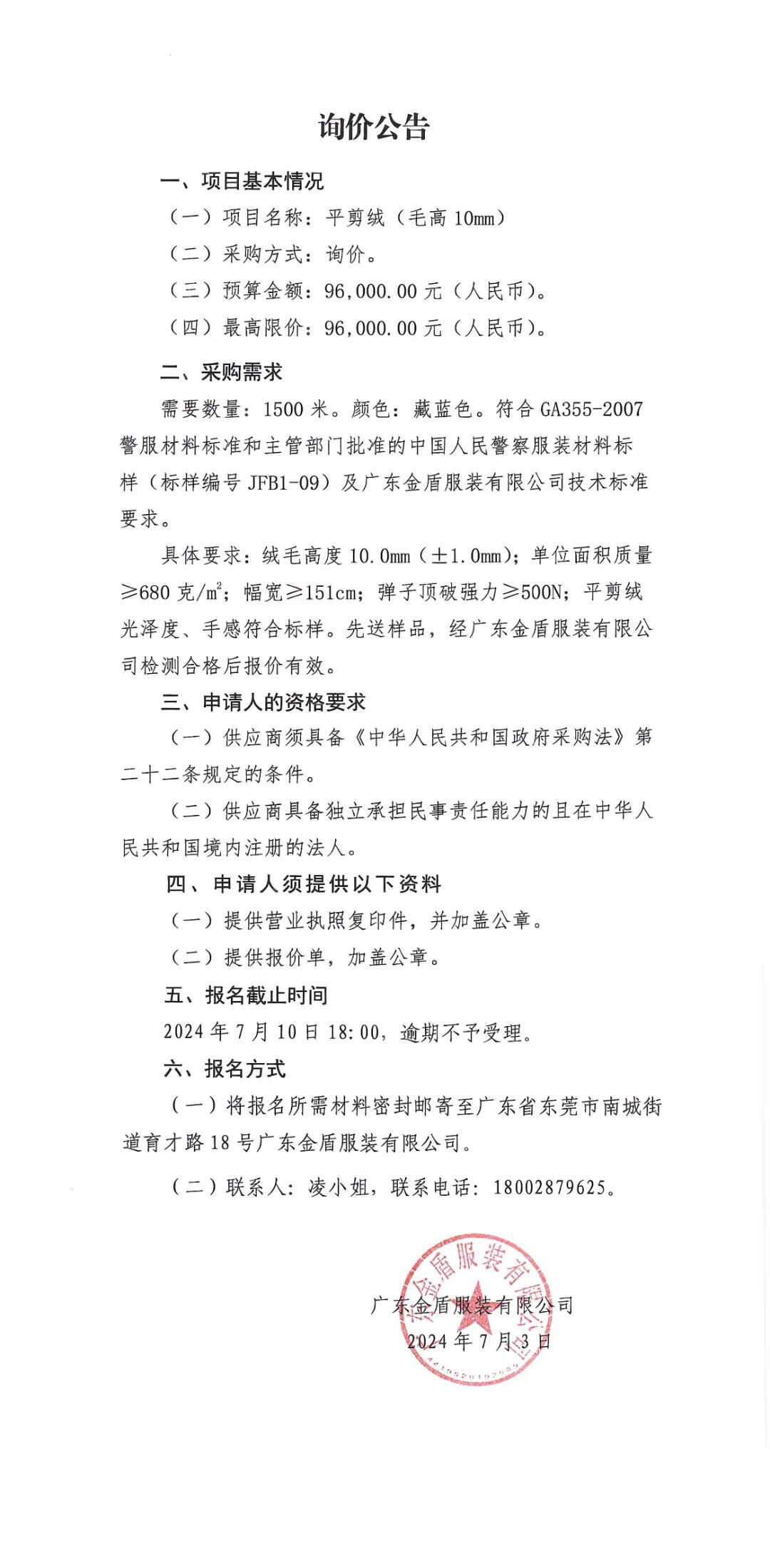 關(guān)于平剪絨(毛高10mm)的詢價公告